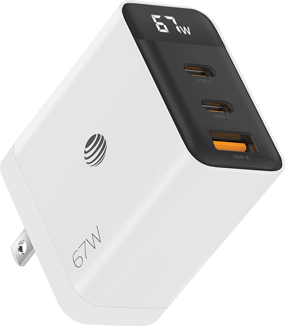 AT&T Essentials Multi Port 67W GaN Wall Charger with LED Display (2 USBC + 1 USBA)