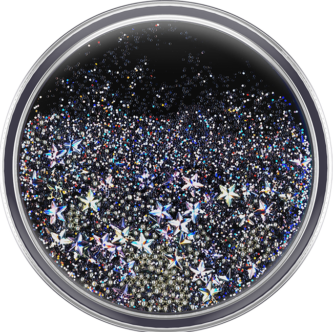 Glitter floating in non toxic liquid.