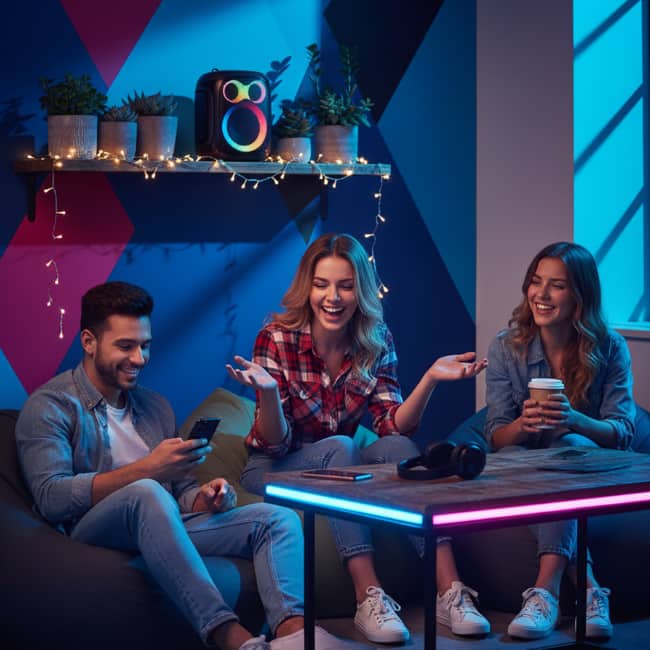 Featuring dynamic LED lighting that syncs with your music, this portable speaker adds vibrant excitement to any celebration. Its sturdy, adjustable tripod stand ensures optimal sound projection, making it perfect for both indoor and outdoor use. With a durable IPX5-rated weatherproof construction, the speaker reliably withstands splashes and outdoor conditions.