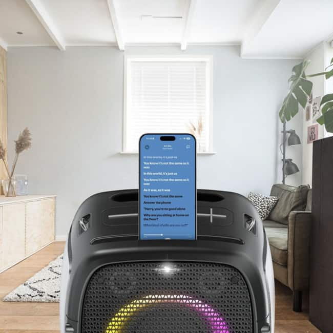Bring the fun wherever you go with the AT&T Essentials 80W Karaoke Speaker. This all-in-one speaker is made for music, singing, and good times with friends and family. With 80 watts of powerful sound, you get clear vocals, deep bass, and loud music that fills any room or outdoor space. It comes with two wireless microphones and a sturdy stand perfect for duets, karaoke nights, or party games. The built-in battery lasts for hours, so the music won’t stop early. It’s also splash-resistant, making it a great choice for outdoor gatherings, BBQs, or poolside fun. Easy to set up and use, this speaker keeps the party going. Just connect, play your favorite songs, and sing your heart out!
