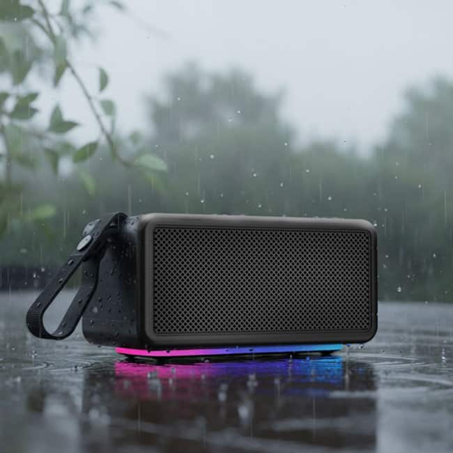 The AT&T Essentials Retro 80W Bluetooth delivers powerful, portable sound in a unique retro design. This speaker offers rich, detailed audio with a balanced bass, making it perfect for any environment. With Bluetooth 5.3 connectivity, you can enjoy seamless wireless audio at home, at a party, or on the go. The built in battery provides up to 12 hours of playtime, and with its waterproof design, there are no concerns with outdoor listening. The speaker features a 360 True Wireless Stereo sound that you can customize the highs and lows!